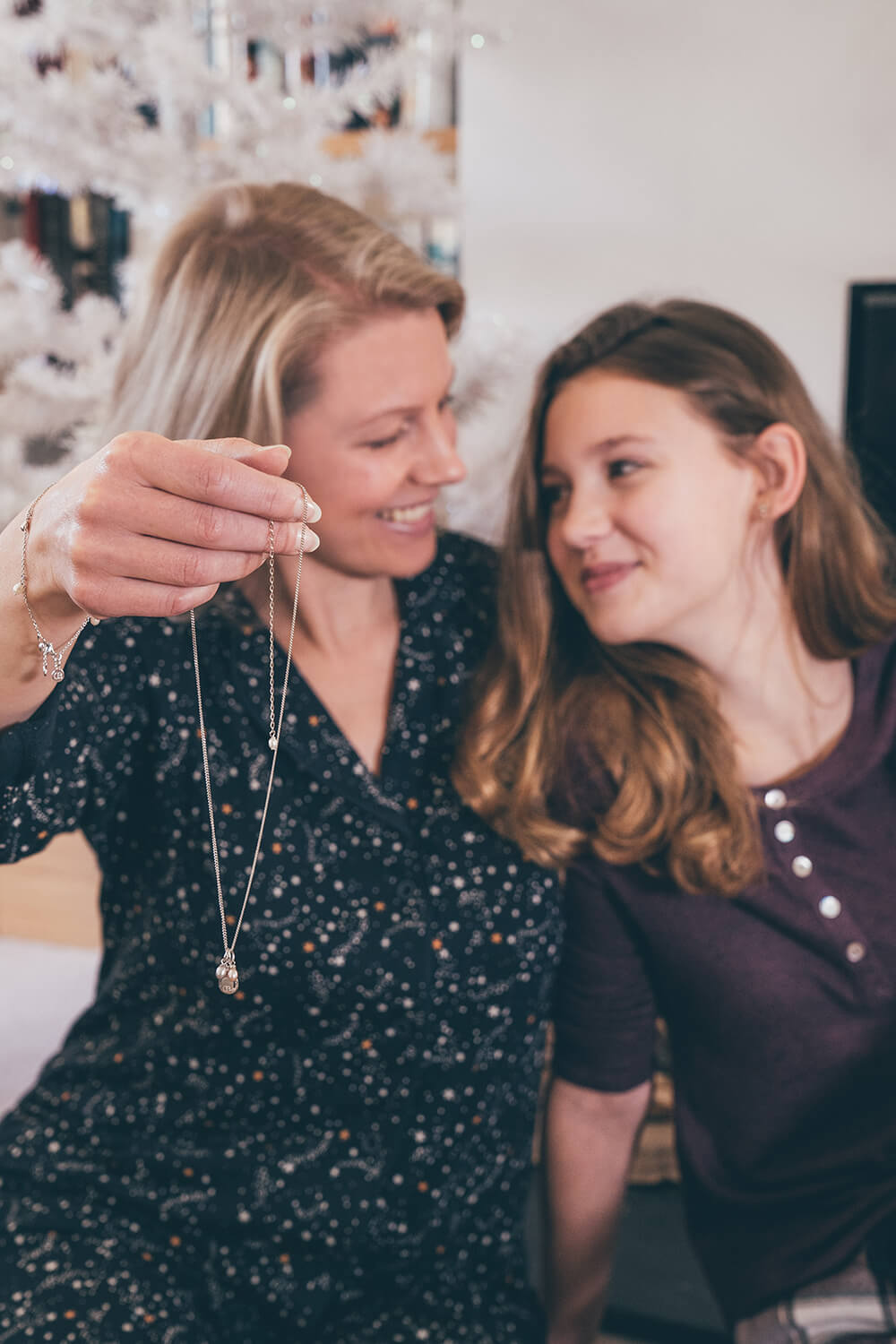 Additional charms in a choice of pearl colours can be added to our Mother and Child Necklace to represent the wearer’s family and loved ones. As one of our bestsellers, the design offers a personal and thoughtful gift and comes complete with luxury packaging.