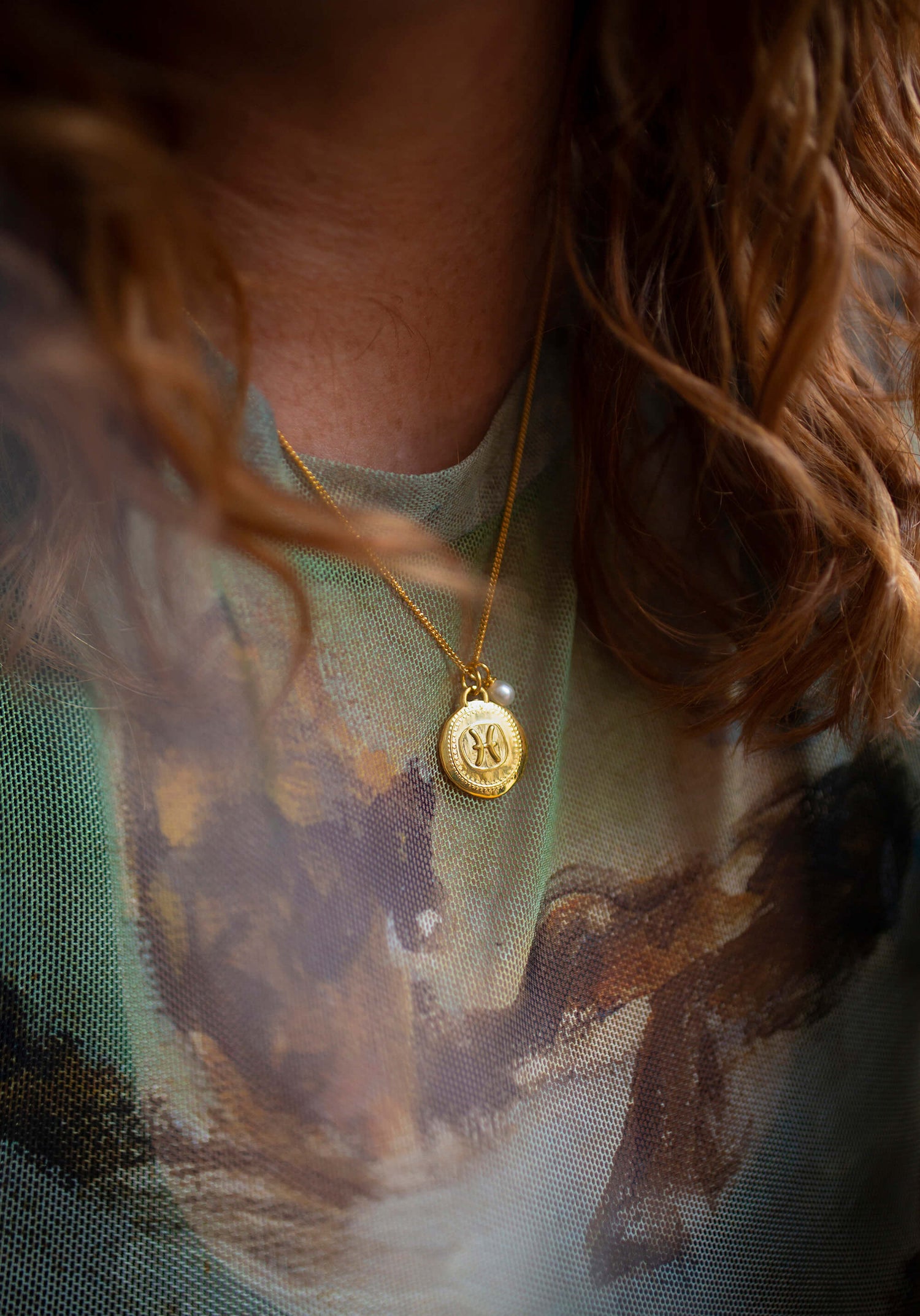 Pisces, gold zodiac pearl necklace, 19/2-20/3