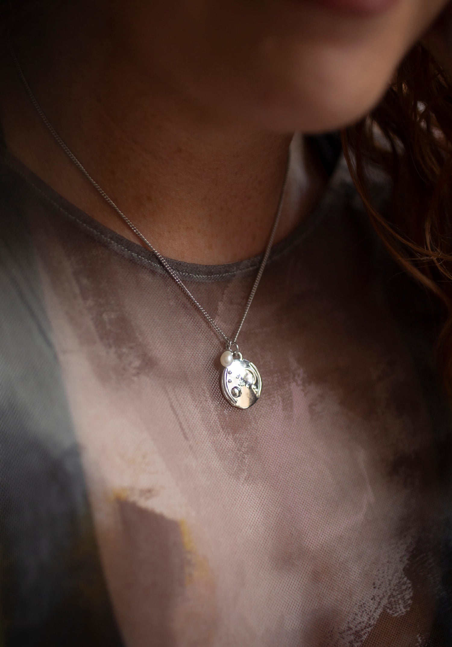 Cancer, silver zodiac pearl necklace, 21/6-22/7