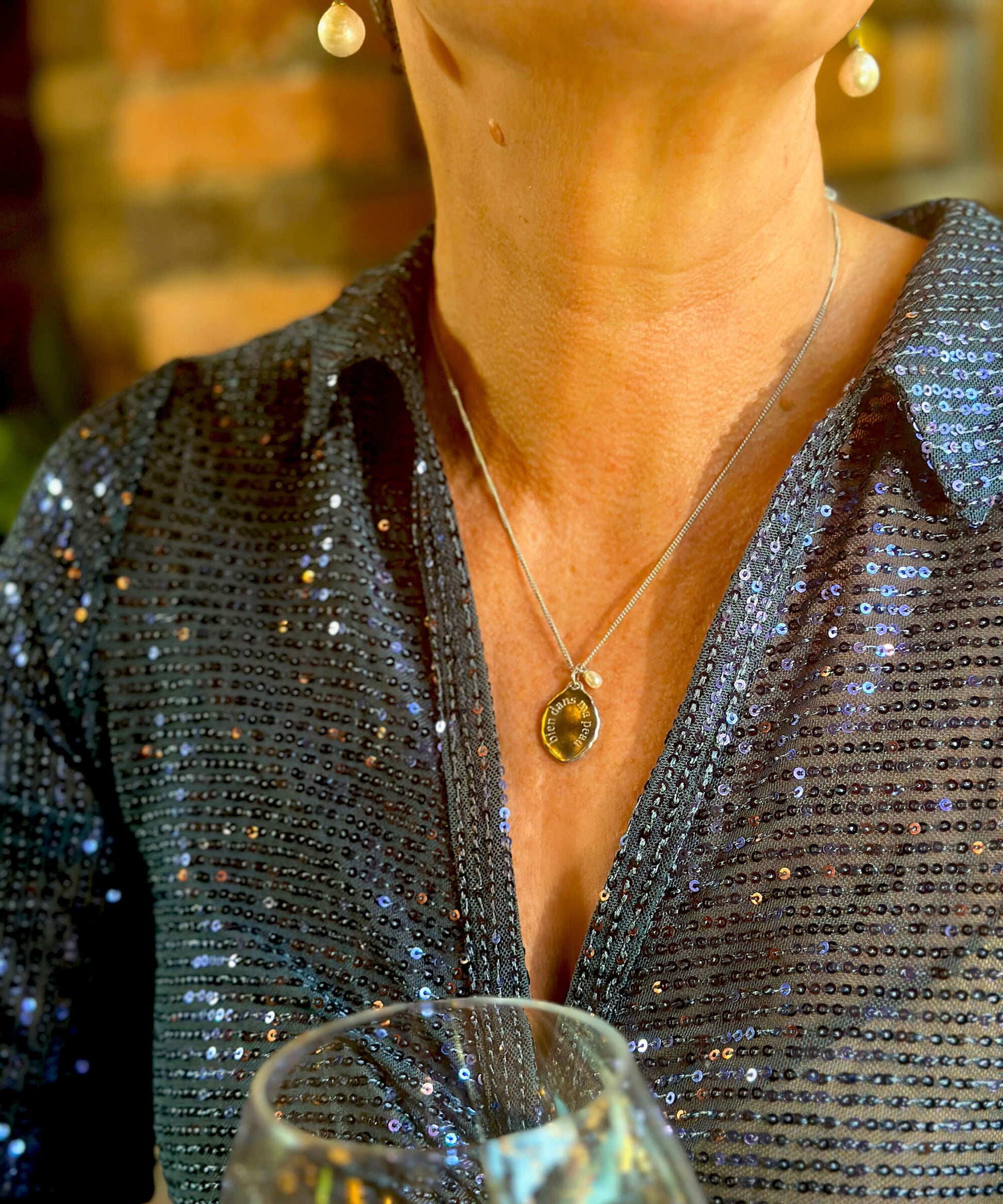 'Bien dans ma peau' - is a new mantra necklace, with a single pearl charm, designed in collaboration with style icon, and creator of the Midlifechic blog, Nikki Garnett. This French phrase translates to 'comfortable in my own skin', as Nikki says: "Too often we focus on what we’re not. I hope that this will remind you to feel at peace with exactly who you are - because you are so much more than just good enough."