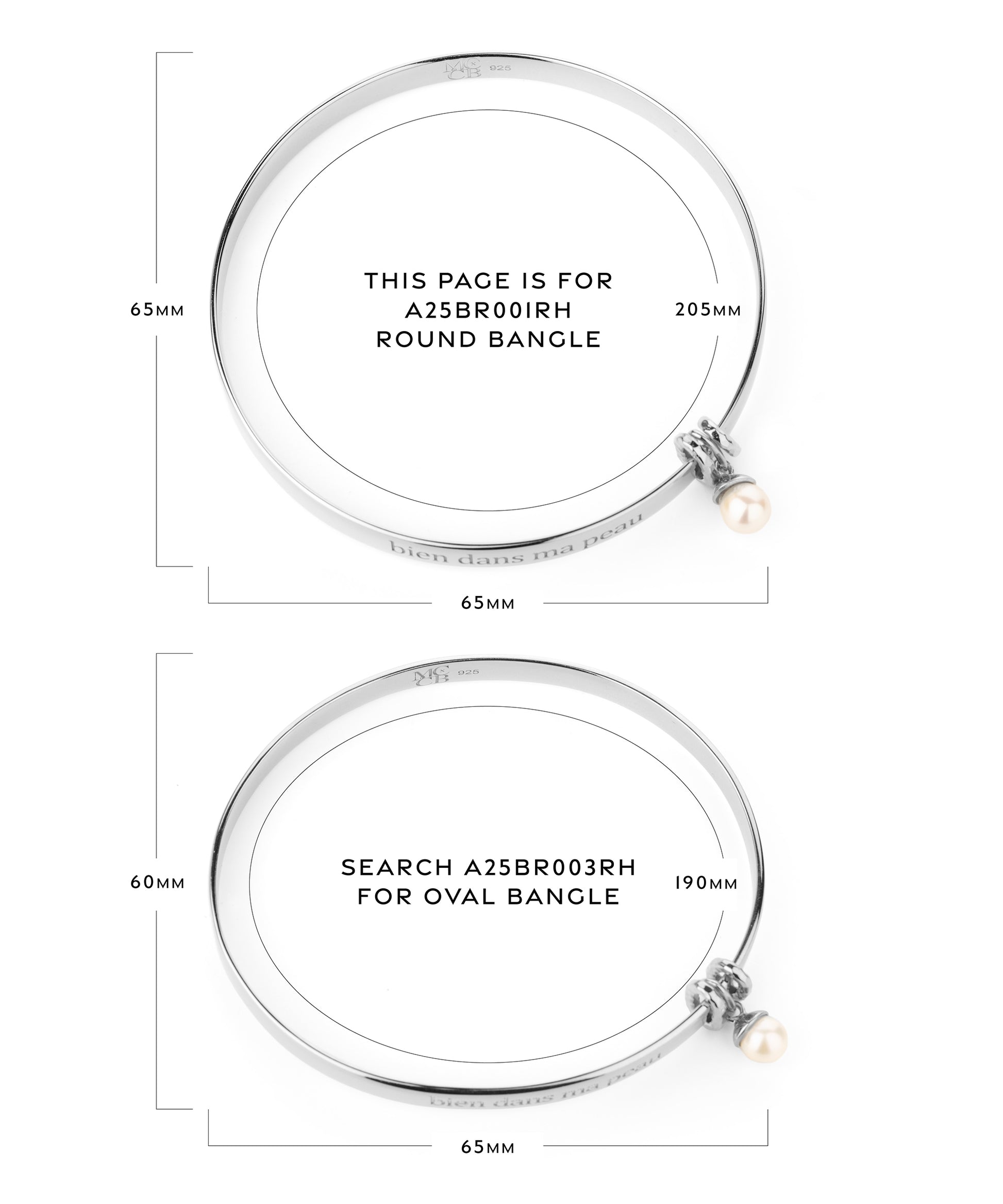DECORATIVE RINGS - there are 2 hand hammered rings (2mm wide), running free on the bangle. Plus one simple ring (0.8mm wide) which holds the pearl charm. PEARL DROP - 4mm