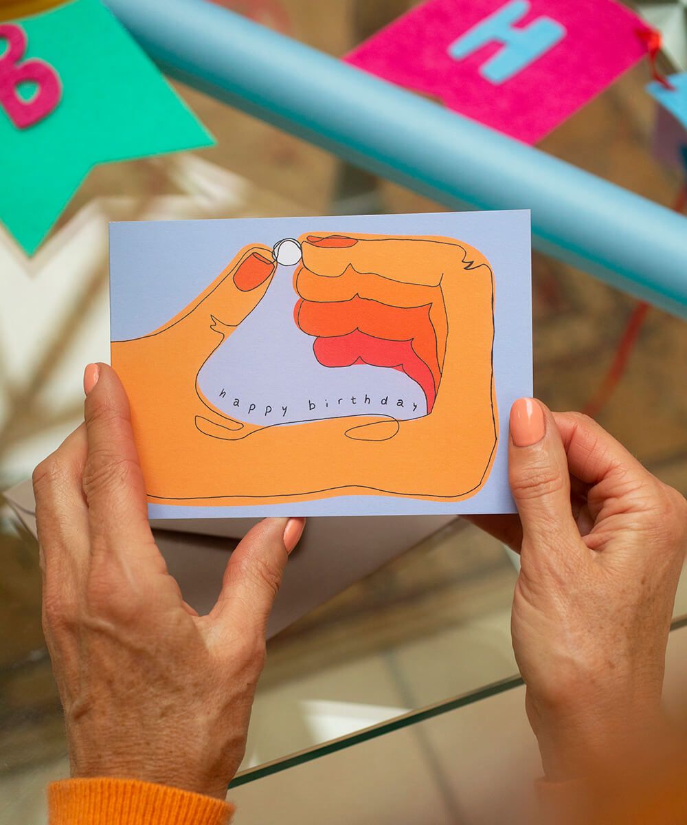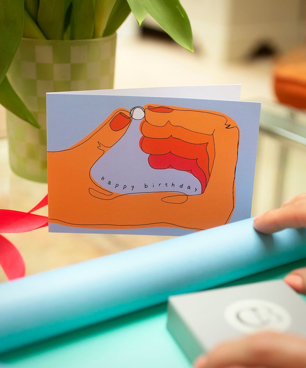 Commissioning original art from inspiring creatives allows us to offer you a genuinely unique artwork card to accompany your jewellery. We love this birthday card design from Honor, a young graphic design artist.