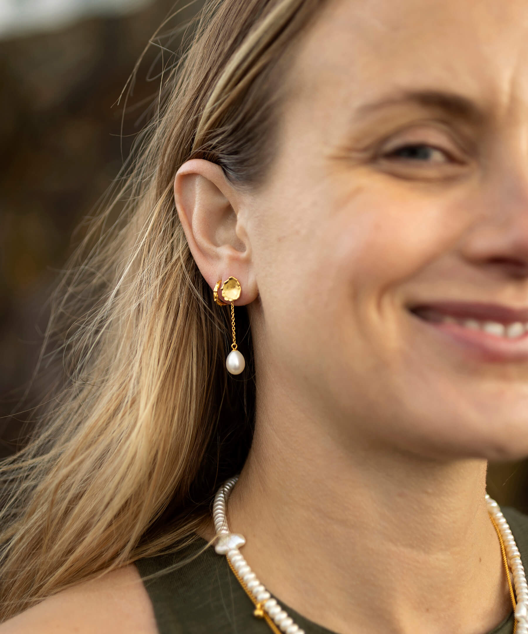 A unique detail of these pearl drop earrings is that you can remove the pearl drop and wear the organic shaped gold discs as simple silver stud earrings. These will make a stylish addition to your jewellery collection.