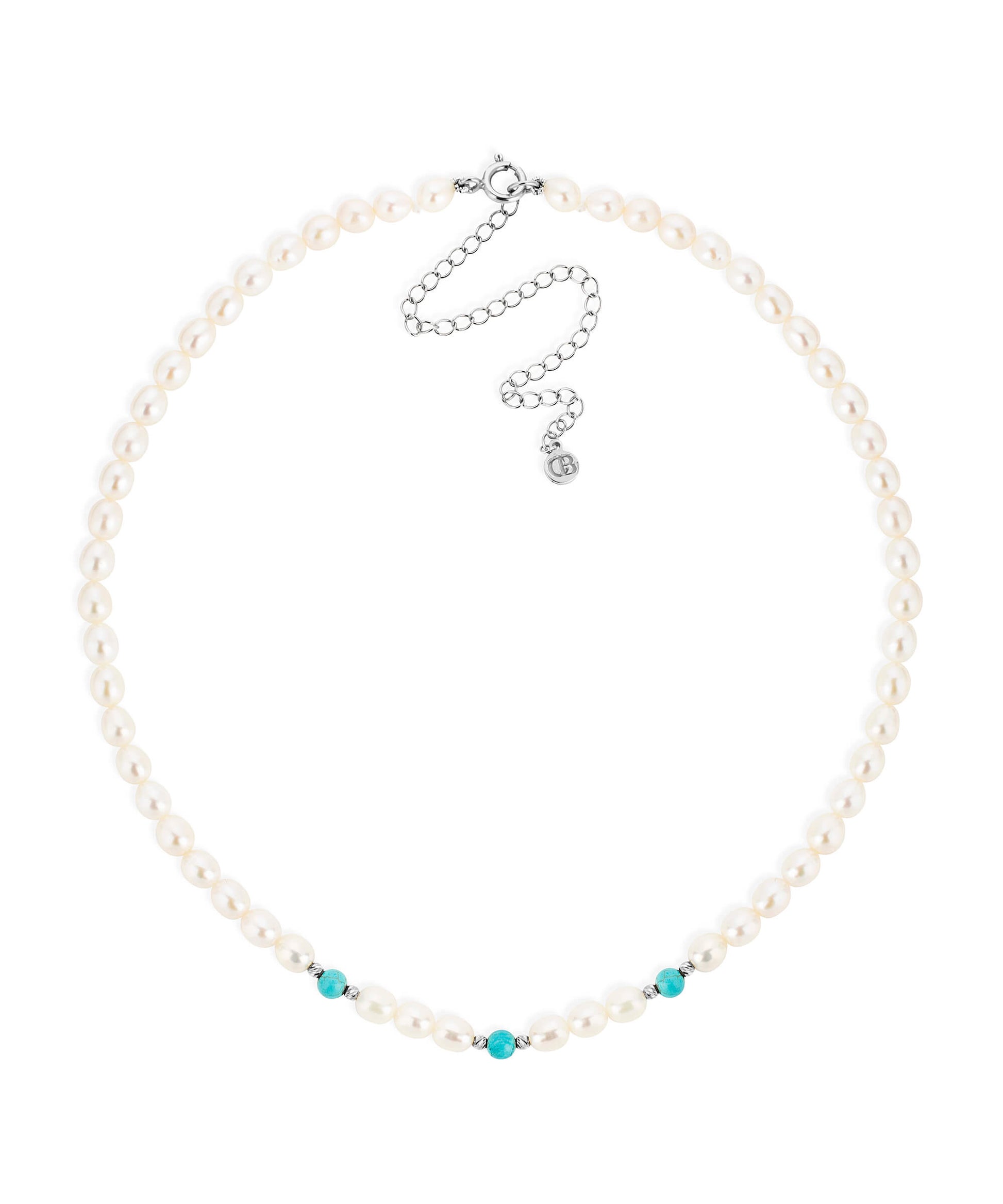 Our turquoise and pearl silver bead choker, 3 beads